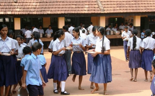 Midday meal scheme providing milk, ragi malt, eggs, bananas and peanut chikki to students.