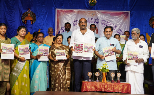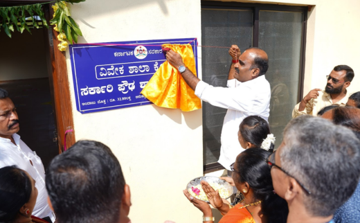 Class 8 students choose language combinations. English is taught from Class 1. English through Kannada book is distributed free to Class 8 students.